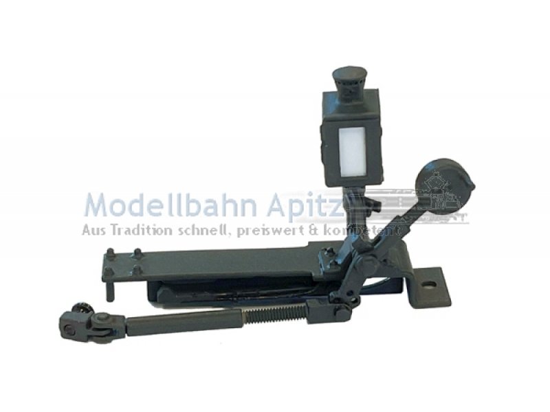 Weichenlaterne, Messing Fertigmodell beleuchtet, für linke Bogenweiche, links vom Gleis stehend, Version B-1