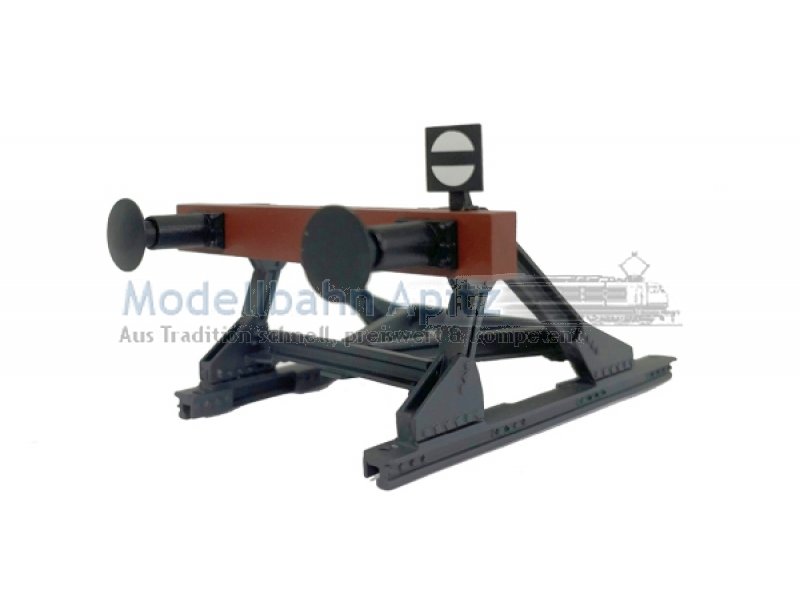 Prellbock mit Puffern, Messing Fertigmodell, lackiert.