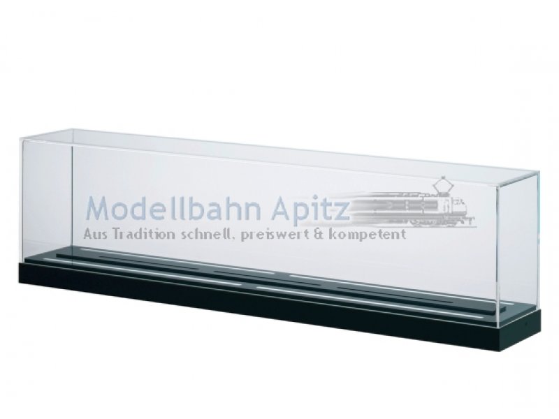 Staubgeschütze Funktionsvitrine mit webbasierter Browsersteuerung. Stationärer Fahrbetrieb zur Lokpräsentation o.ä. Steuerung praktisch aller Lokfunktionen auf dem Smartphone, Tablet oder Laptop mit einer Oberfläche ähnlich der Märklin Central Station 3. Ebenfalls kann die im Vitrinensockel LED-Beleuchtung geschaltet und gedimmt werden. Das Vitrinen-Unterteil besteht aus einem schwarzem, hochglanz polierten Plexiglas. Im Sockel integrierte Elektronik und Anschlüsse. Stromversorgung ebenso wie notwendiger QR-Code und entsprechende Software im Lieferumfang. Verwendbar mit allen modernen Betriebssystemen wie Android, IOS, Windows u.a.Für alle Lokomotiven mit mfx-Decoder und in gerader Linie liegender Lok-Befestigungsschrauben.Maximale verwendbare Loklänge von 89 cm. Gesamtlänge ca. 92,5 cm, Sockelbreite ca. 15,5 cm, Höhe Sockel mit Haube 26 cm.