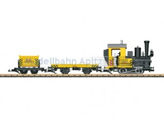 Dieses Startset enthält einen Baustellenzug, bestehend aus einer Tenderlok, einem Klemmbausteinwagen und einem Kipplorenwagen. Die Lok ist mit einem leistungsstarken Motor ausgerüstet und verfügt über ein beleuchtetes Spitzenlicht. Mit den beigelegten Stickern können die Lok und beide Wagen dekoriert werden. Das Set enthält zusätzlich einen kompletten Gleiskreis, Stromversorgung für 230 Volt und einen Fahrregler. Zuglänge ca. 70 cm.
