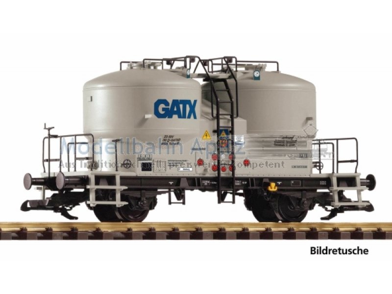 Neuheit 2026: Detailreicher Zementsilowagen für Gartenbahn (Modelleisenbahn Spur G), langlebig und robustDer PIKO Silowagen für den Transport von Zement der GATX in Epoche V besticht durch eine konturenscharfe Bedruckung und zahlreiche fein ausgeführte Details. Das robuste Modell bietet hervorragende Rolleigenschaften und ist ideal für den ganzjährlichen Einsatz in der Gartenbahnanlage.Silowagen für Zementtransport der GATX in Epoche V | Konturenscharfe Bedruckung und viele Details | Robuste Bauweise für den Gartenbahnbetrieb | Hervorragende Rolleigenschaften