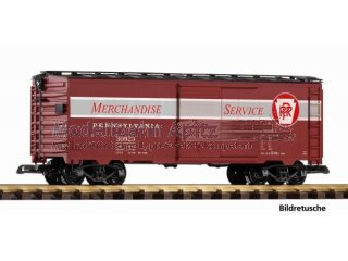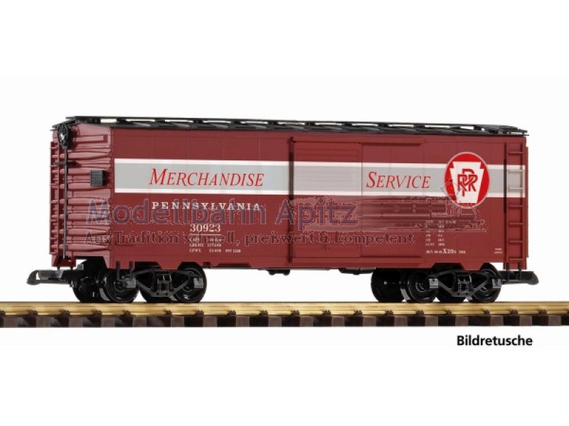 Neuheit 2026: US Güterwagen der Pennsylvania Railroad für Gartenbahn (Modelleisenbahn Spur G)Der PIKO Güterwagen im Design der US Bahngesellschaft Pennsylvania Railroad überzeugt durch eine saubere Lackierung und detailreiche Bedruckung. Die robuste Konstruktion und hervorragenden Rolleigenschaften machen ihn ideal für den ganzjährigen Einsatz auf der Gartenbahnanlage.Güterwagen der Pennsylvania Railroad im originalgetreuen US-Design | Hochwertige Lackierung und präzise Bedruckung | Robuste Bauweise für ganzjährigen Gartenbahnbetrieb | Hervorragende Rolleigenschaften | Perfekte Ergänzung für Fans von US Modelleisenbahnen