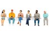 Warten, Reisen, Pause machen! Sechs Fahrgäste in entspannter Sitzhaltung – bereit für ihre nächste Fahrt oder einfach zum Ausruhen zwischendurch. Ein Mann vertreiben sich die Zeit mit dem Smartphone, eine Frau genießt ihren Kaffee, während eine andere in ihrem Buch schmökert. Ein junger Mann blickt aufmerksam umher, und eine Frau mit Kopfhörern ist ganz in ihre Musik vertieft. Ein ältere Herr ist derweil schon eingenickt – vielleicht ein kleines Nickerchen vor der nächsten Haltestelle. Ideal zur Gestaltung realistischer Szenen an Haltestellen, in Wartebereichen oder in Fahrzeugen!