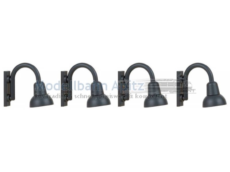 Die dunkelgrauen Wandlampen mit geschwungenem Arm und klassischem Schirm setzen dezente Akzente an Hauswänden, Eingängen oder kleinen Gebäuden. Angeschlossen an 12 –16 V AC/DC sorgen sie für eine stimmungsvolle Beleuchtung – unauffällig am Tag, stimmungsvoll in der Nacht.