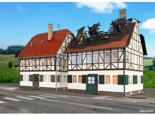 Neuheit 2026: Verwittertes Fachwerkhaus mit Brandspuren, Gebäudemodell für Gartenbahn (Modelleisenbahn Spur G)Das PIKO Gebäudemodell eines abgebrannten Fachwerkhauses erzählt die Geschichte eines vergangenen Brandes mit verkohlten Dachsparren und dunklen Brandspuren. Die Türen lassen sich öffnen. Durch die verwitterte Optik wird das Modell zum eindrucksvollen Blickfang jeder Gartenbahnanlage.Verwittertes Fachwerkhaus mit realistischen Brandspuren | Türen öffnen sich für mehr Realismus | Eindrucksvolles Gebäudemodell für die Gartenbahnanlage