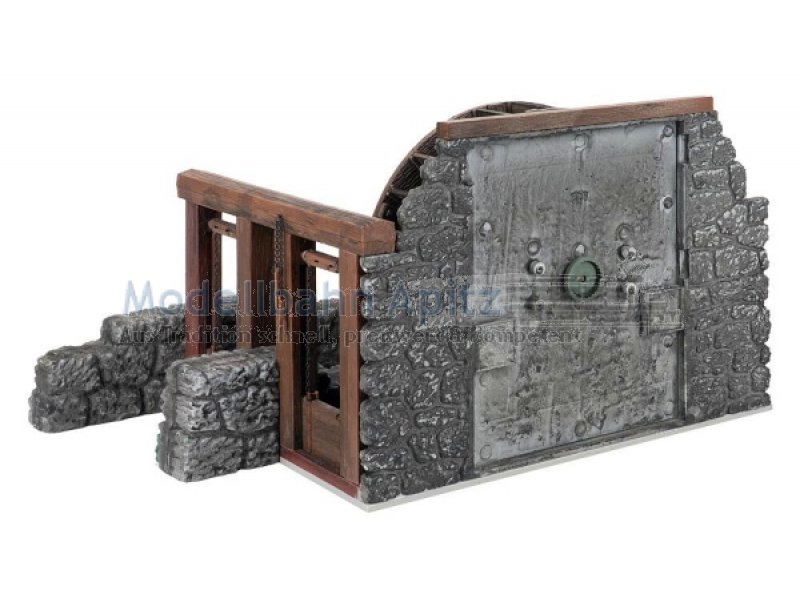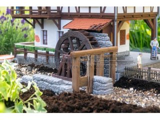 Das Wasserrad mit gemauertem Kanal zeigt traditionelle Mühlentechnik in detailreicher Ausführung. Die fein strukturierte Holzoptik und die naturgetreu gestalteten Steinmauern fügen sich perfekt in ländliche Umgebungen ein – ideal für Mühlen, Werkstätten oder historische Anlagen. Das Wasserrad kann mit dem Bastelmotor Art. 330090 (liegt nicht bei) angetrieben werden und wird so zum lebendigen Element Ihrer Modelllandschaft.