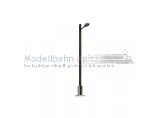 Universell einsetzbare Straßenleuchte mit Mast aus echtem Holz. Auch für den Bahnhofsbereich und Industriegelände geeignet. Nachbildung der Betoneinfassung am Fuß der Lampe.