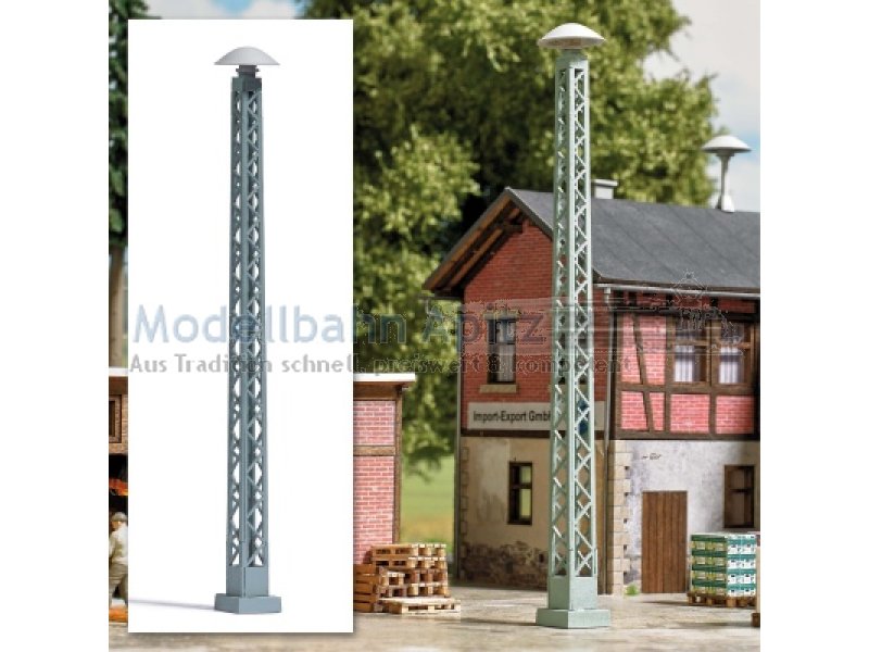 Die Warnsirene alarmiert im Katastrophenfall die Einsatzkräfte. Sie ist auf der Spitze eines hohen Gittermastes montiert und wird mit passenden Schildern zum Ausschneiden geliefert. Fertigmodell, ohne Funktion.