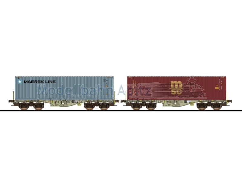 Containertragwagen, H0, Sgmmns, 37 80 4505 418-6 + 37 80 4505 440-0, D-AAEC Ep. VI, Container MSKU 129707 + MSDU 771850, DC