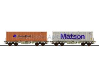 Containertragwagen, H0, Sgmmns, 37Â 80Â 4505 332-9 + 37Â 80Â 4505 354-3, D-AAEC Ep. VI, Container HLXU 805919 + MATU 261521, DC