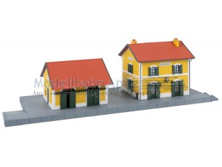 Während der nächste Modellzug gemächlich auf das Gleis einfährt, herrscht reges Miniatur-Treiben am Bahnhof Güssing! Der kleine zitronengelbe Bahnhof mit seinen dunkelgrünen Fensterläden und dem charmanten roten Ziegeldach fügt sich nahtlos in die unterschiedlichsten Landschaften ein. Farblich inspiriert vom realen Bahnhof Güssing in Österreich, setzt auch das Modell mit seinem leuchtenden Anstrich fröhliche Akzente auf der Modellanlage!