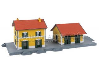Während der nächste Modellzug gemächlich auf das Gleis einfährt, herrscht reges Miniatur-Treiben am Bahnhof Güssing! Der kleine zitronengelbe Bahnhof mit seinen dunkelgrünen Fensterläden und dem charmanten roten Ziegeldach fügt sich nahtlos in die unterschiedlichsten Landschaften ein. Farblich inspiriert vom realen Bahnhof Güssing in Österreich, setzt auch das Modell mit seinem leuchtenden Anstrich fröhliche Akzente auf der Modellanlage!