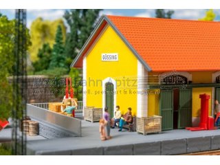 Während der nächste Modellzug gemächlich auf das Gleis einfährt, herrscht reges Miniatur-Treiben am Bahnhof Güssing! Der kleine zitronengelbe Bahnhof mit seinen dunkelgrünen Fensterläden und dem charmanten roten Ziegeldach fügt sich nahtlos in die unterschiedlichsten Landschaften ein. Farblich inspiriert vom realen Bahnhof Güssing in Österreich, setzt auch das Modell mit seinem leuchtenden Anstrich fröhliche Akzente auf der Modellanlage!