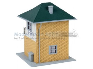 Ein kleines Highlight für die Modellbahnanlage! Die gelb gemauerte Blockstelle mit markantem, dunkelgrünem Zeltdach und weißem Holztreppenaufgang bringt mehr Betriebsamkeit auf Ihre Bahnstrecke. Perfekt, um die Anlage mit etwas detailverliebtem Realismus zu versehen.