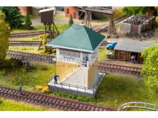 Ein kleines Highlight für die Modellbahnanlage! Die gelb gemauerte Blockstelle mit markantem, dunkelgrünem Zeltdach und weißem Holztreppenaufgang bringt mehr Betriebsamkeit auf Ihre Bahnstrecke. Perfekt, um die Anlage mit etwas detailverliebtem Realismus zu versehen.
