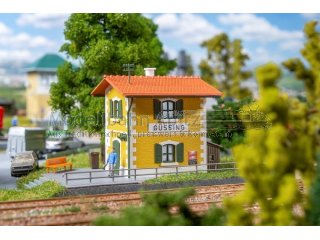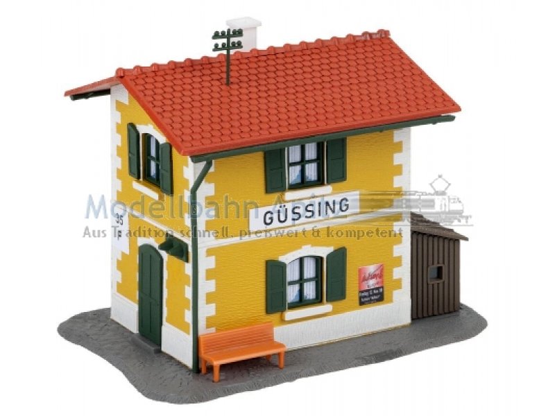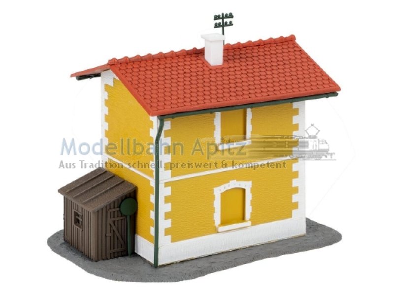 Wie der Bahnhof »Güssing« überzeugt auch dieses Bahnwärterhäuschen durch seine lebendige Farbgestaltung in spritzigem Gelb – ein echter Blickfang auf jeder Anlage. Sockel, Simse und Friese sind digital bedruckt und sorgen für weiße Akzente. Ideal, um der Modellbahnlandschaft einen neuen Anstrich zu verleihen.