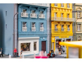 Farbtupfer fürs Stadtbild – mit ihren bunten Farben bringen diese beiden Stadthäuser frischen Wind in Ihre Miniaturstadt: Das gelbe Haus mit vier Stockwerken und das blaue Pendant mit fünf Etagen ergänzen sich perfekt und setzen farbenfrohe Akzente im Stadtviertel. Die klassischen Mansardendächer verleihen den Modellen einen Hauch historischer Eleganz – ideal kombiniert mit den Stadthäusern Art. 130712 und Art. 130713.