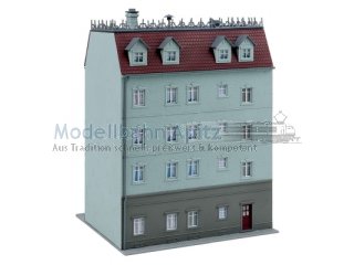 Ein Stück deutscher Seriengeschichte im Modellformat! Inspiriert von einem Wohnhaus aus der ARD-Serie »Marienhof«, bringt dieses Modell den Charme des fiktiven Kölner Stadtteils auf die Anlage. Das Mehrfamilienhaus mit seiner grauen Fassadengestaltung, sechs charakteristischen Balkonen und einem dunkelroten Ziegeldach in Sattelform ist ein ideales Modell, um Szenen mit Alltagsflair und städtischem Charakter darzustellen. Besonders auffällig: der flache Dachbereich, eingerahmt von umlaufenden schmiedeeisernen Zierelementen.