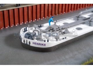 Ein Tankschiff für die Binnenschifffahrt! Dieses Modell eines Tankschiffs bringt authentisches Hafen- und Industrieflair auf jede Anlage. Der abgeflachte Rumpf, das Steuerhaus und das Rohrleitungssystem an Deck sorgen für den industriellen Touch. Zwei beiliegende Holzcontainer ergänzen die Szenerie. Wasserlinienmodell – nicht schwimmfähig – dafür aber ideal zur Ausgestaltung realistischer Wasserszenerien im Modell.