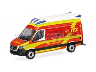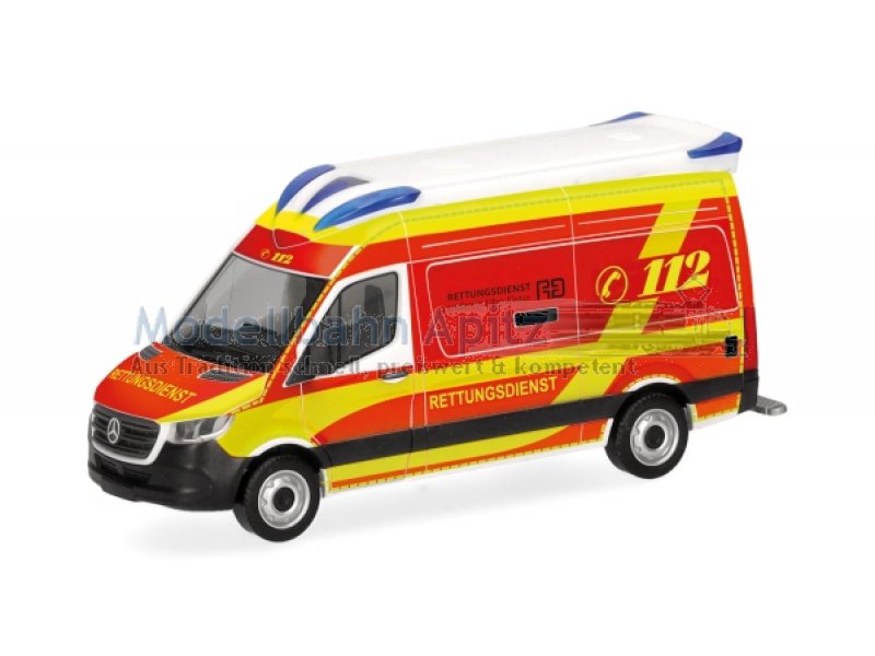 Als erster Mercedes-Benz Sprinter der aktuellen Bauform mit dem markanten Delfis-Dachaufbau erscheint bei Herpa dieser Rettungswagen des Rettungsdienstes im Landkreis Elbe-Elster. Das Modell wird in einmaliger Auflage gefertigt. |