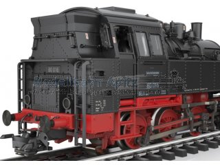 Vorbild: Tenderlokomotive Baureihe 80 der Deutschen Bundesbahn. Ausführung mit drei Kesselaufbauten, Läutewerk und Turbodynamo links, Rauchkammertüre ohne Zentralverschluss mit Nummernschild mittig. Tiefschwarze Grundfarbgebung. Betriebsnummer 80 016. Betriebszustand um 1953.