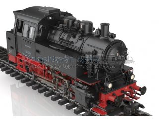 Vorbild: Tenderlokomotive Baureihe 80 der Deutschen Bundesbahn. Ausführung mit drei Kesselaufbauten, Läutewerk und Turbodynamo links, Rauchkammertüre ohne Zentralverschluss mit Nummernschild mittig. Tiefschwarze Grundfarbgebung. Betriebsnummer 80 016. Betriebszustand um 1953.
