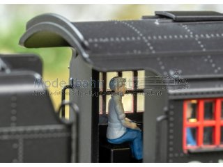Modell: Mit Digital-Decoder mfx+ und umfangreichen Licht- und Soundfunktionen. Geregelter Hochleistungsantrieb mit Schwungmasse im Kessel. Vier Achsen angetrieben, davon drei Achsen über Kuppelstangen. Haftreifen. Lokomotive und Tender weitgehend aus Metall. Serienmäßig eingebauter Raucheinsatz, mit geschwindigkeitsabhängigem, dynamischem Rauchausstoß, digital schaltbar. Fahrtrichtungsabhängig wechselnde Stirnbeleuchtung mit je einer Lampe an Lok und Tender konventionell in Betrieb, digital schaltbar. Führerstands- und Nummerntafelbeleuchtung sowie Feuerbüchsenflackern separat digital schaltbar. Beleuchtung mit wartungsfreien warmweißen und roten Leuchtdioden (LED). Mit Pufferspeicher. Verstellbare Kurzkupplung mit Kinematik zwischen Lok und Tender. Am Tender kinematikgeführte Kurzkupplung mit NEM-Schacht. Lokführer- und Heizerfigur im Führerstand sitzend. Rohrleitungen für den Bereich unterhalb des Führerhauses liegen als separat ansteckbare Teile bei. Länge ca. 31,3 cm.