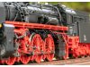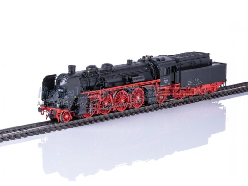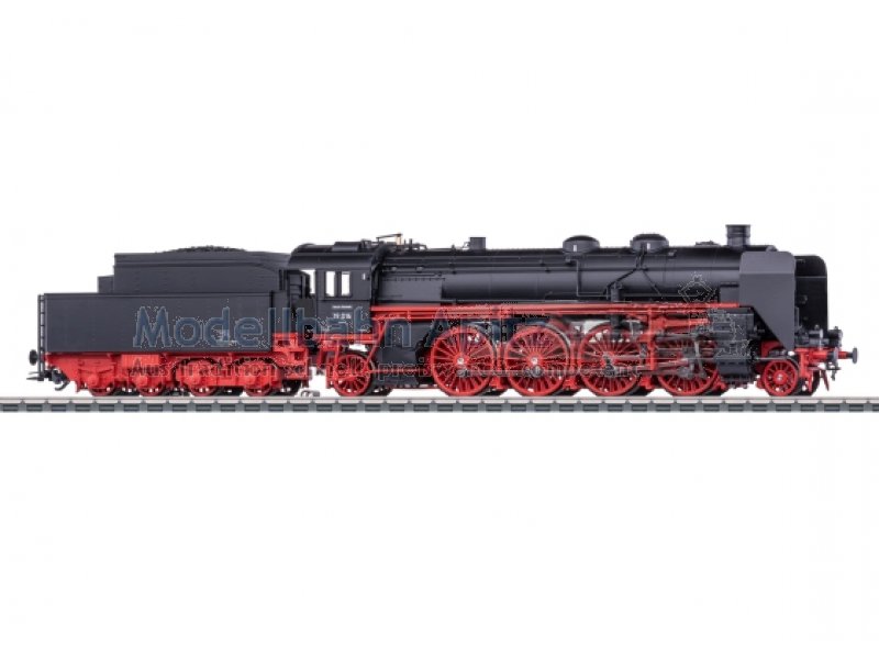 Modell: Mit Digital-Decoder mfx+ und umfangreichen Geräuschfunktionen. Geregelter Hochleistungsantrieb mit Schwungmasse im Kessel. 4 Achsen angetrieben. Haftreifen. Lokomotive und Tender weitgehend aus Metall. Serienmäßig eingebauter Raucheinsatz, mit geschwindigkeitsabhängigem, dynamischem Rauchausstoß. Fahrtrichtungsabhängig wechselndes Zweilicht-Spitzensignal konventionell in Betrieb, digital schaltbar. Führerstandbeleuchtung und Feuerbüchsenflackern jeweils separat digital schaltbar. Beleuchtung mit wartungsfreien warmweißen und roten Leuchtdioden (LED). Mit Pufferspeicher. Schwenkbare Führerstandtüren und Imitation der Vorhänge zwischen Führerstand und Tender. Kurzkupplung mit Kinematik zwischen Lok und Tender. Am Tender kinematikgeführte Kurzkupplung mit NEM-Schacht. Pufferhöhe an Lok und Tender nach NEM. Befahrbarer Mindestradius R2 437,5 mm. Kolbenstangenschutzrohre und Bremsschläuche liegen bei. Länge über Puffer 26,0 cm.