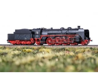 Modell: Mit Digital-Decoder mfx+ und umfangreichen Geräuschfunktionen. Geregelter Hochleistungsantrieb mit Schwungmasse im Kessel. 4 Achsen angetrieben. Haftreifen. Lokomotive und Tender weitgehend aus Metall. Serienmäßig eingebauter Raucheinsatz, mit geschwindigkeitsabhängigem, dynamischem Rauchausstoß. Fahrtrichtungsabhängig wechselndes Zweilicht-Spitzensignal konventionell in Betrieb, digital schaltbar. Führerstandbeleuchtung und Feuerbüchsenflackern jeweils separat digital schaltbar. Beleuchtung mit wartungsfreien warmweißen und roten Leuchtdioden (LED). Mit Pufferspeicher. Schwenkbare Führerstandtüren und Imitation der Vorhänge zwischen Führerstand und Tender. Kurzkupplung mit Kinematik zwischen Lok und Tender. Am Tender kinematikgeführte Kurzkupplung mit NEM-Schacht. Pufferhöhe an Lok und Tender nach NEM. Befahrbarer Mindestradius R2 437,5 mm. Kolbenstangenschutzrohre und Bremsschläuche liegen bei. Länge über Puffer 26,0 cm.