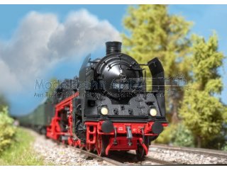Modell: Mit Digital-Decoder mfx+ und umfangreichen Geräuschfunktionen. Geregelter Hochleistungsantrieb mit Schwungmasse im Kessel. 4 Achsen angetrieben. Haftreifen. Lokomotive und Tender weitgehend aus Metall. Serienmäßig eingebauter Raucheinsatz, mit geschwindigkeitsabhängigem, dynamischem Rauchausstoß. Fahrtrichtungsabhängig wechselndes Zweilicht-Spitzensignal konventionell in Betrieb, digital schaltbar. Führerstandbeleuchtung und Feuerbüchsenflackern jeweils separat digital schaltbar. Beleuchtung mit wartungsfreien warmweißen und roten Leuchtdioden (LED). Mit Pufferspeicher. Schwenkbare Führerstandtüren und Imitation der Vorhänge zwischen Führerstand und Tender. Kurzkupplung mit Kinematik zwischen Lok und Tender. Am Tender kinematikgeführte Kurzkupplung mit NEM-Schacht. Pufferhöhe an Lok und Tender nach NEM. Befahrbarer Mindestradius R2 437,5 mm. Kolbenstangenschutzrohre und Bremsschläuche liegen bei. Länge über Puffer 26,0 cm.