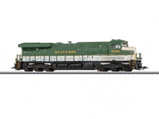 Vorbild: Schwere dieselelektrische Güterzuglokomotive Typ General Electric ES44AC der Norfolk Southern (NS). Grundfarbgebung in Grau/Grün/Schwarz der ehemaligen Southern Railway. Betriebsnummer 8099. Aktueller Betriebszustand als Heritage-Lokomotive. Modell: Mit Digital-Decoder mfx+ und umfangreichen Geräusch- und Lichtfunktionen. Geregelter Hochleistungsantrieb mit Schwungmasse zentral eingebaut. Je zwei Achsen in jedem Drehgestell über Kardan angetrieben. Haftreifen. Fahrtrichtungsunabhängig schaltbare Spitzenbeleuchtung bestehend aus je vier Lampen an der Front und am Heck der Lokomotive. Spitzensignal konventionell in Betrieb und jeweils paarweise separat digital abschaltbar. Führerstandsbeleuchtung, Betriebsnummerntafeln, Fernlicht und Blinkfunktion der Spitzenlichter digital schaltbar. Beleuchtung mit wartungsfreien warmweißen Leuchtdioden (LED). Mit Pufferspeicher. Serienmäßig eingebauter Rauchgenerator mit dynamischem Rauchausstoß, digital schaltbar. Viele separat angesetzte Details. Für den Betrieb mit Klauenkupplungen kann der NEM-Schacht mittels beiliegenden Klemmstücken fixiert werden. Ein Schienenräumer mit geringerer Aussparung für die Front, Bremsschläuche und zwei Klemmstücke für den NEM-Schacht liegen bei. Länge über Kupplung ca. 27 cm.
