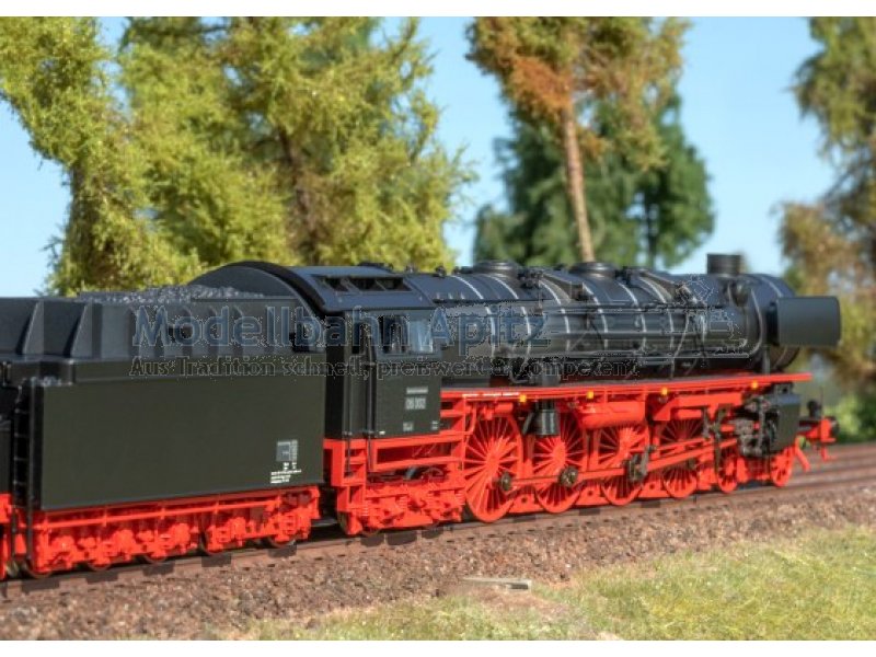 Vorbild: Schnellzug-Dampflokomotive 06 002 der Deutschen Bundesbahn (DB). In fiktiver Ausführung ohne Stromlinienverkleidung, mit Kohlen-Schlepptender 2´3 T38, Zweilicht-Spitzensignal, Witte-Windleitbleche und einseitiger Indusi. Heimatbetriebswerk Hamm. Betriebszustand 1952.
