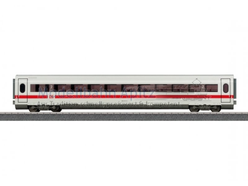Vorbild: Großraumwagen 2. Klasse (BR 806.3) zum Hochgeschwindigkeitszug ICE 2 der Deutschen Bahn AG (DB AG). Modell: Wagen mit Inneneinrichtung und getönten Seitenfenstern.Länge über Puffer 26,4 cm.Gleichstromradsatz E700580 separat erhältlich.