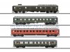 Vorbild: Schnellzugwagen-Set besteht aus den folgenden 4 Wagen unterschiedlicher Bauarten zum Schnellzug D 74. 1 vierachsiger Gepäck- und Postwagen PwPost4ü. 1 vierachsiger Sitzwagen ABC4ü, 1./2./3. Klasse (Einheitsbauart 1928-30). 1 vierachsiger Schürzen-Schlafwagen WLAB4ü(e) der DSG. 1 vierachsiger Schürzenwagen BC4üwe, 2./3. Klasse. Zuglauf: D 74 Hamburg Altona - Basel SBB, für den Streckenabschnitt Frankfurt-Basel SBB. Deutsche Bundesbahn (DB) und Deutsche Speisewagen- und Schlafwagen-Gesellschaft (DSG). Betriebszustand um 1955. Modell: Detaillierte Ausführung in vollem Längenmaßstab. Befahrbarer Mindestradius 360 mm. Alle Wagen mit serienmäßig eingebauter LED-Innenbeleuchtung, mit warmweißen Leuchtdioden (LED) und Pufferkondensator. Schnellzugwagen ABC4ü, 1./2./3. Klasse mit Schleifer zur Stromaufnahme, versorgt über die serienmäßig eingebauten stromführenden Kurzkupplungsköpfe den ganzen Wagenverband mit Strom. Dazu ist eine fest definierte Fahrzeugreihenfolge vorgegeben. Gepäck- und Postwagen PwPost4ü zur Gepäckabteil-Seite mit stromführender Kurzkupplung, Postabteil-Seite zur Lokomotive mit normalem Kurzkupplungskopf für niedrige Pufferhöhe. Alle anderen Wagen mit stromführenden Kurzkupplungsköpfen ausgestattet. Kurze Faltenbälge liegen zum Austausch bei. Aufgedruckte Wagenlaufschilder und Ordnungsnummern. Ein Leporello zeigt die Darstellung des gesamten Zuges und die vorbildgerechte Einordnung der einzelnen Wagen im Zug-Verband. Gesamtlänge über Puffer ca. 103 cm.