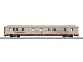 Vorbild: Gepäckwagen der Bauart Dm 903, in der Ausführung der City-Bahn Köln-Gummersbach DB Expressdienst. Betriebszustand ab 1987. Modell: Mit Drehgestelle Bauart Minden-Deutz schwer (Bauart 330), mit Doppelklotzbremse. Vorbereitet für stromführende Kupplungen 7319 oder stromführende Kurzkupplungen 72022, Schleifer 73406, Innenbeleuchtung 73400/73401 (2x), 73410 oder 73411. Typspezifisch gestalteter Unterboden. Befahrbarer Mindestradius 360 mm. Länge über Puffer ca. 28,2 cm. Gleichstromradsatz E700580.