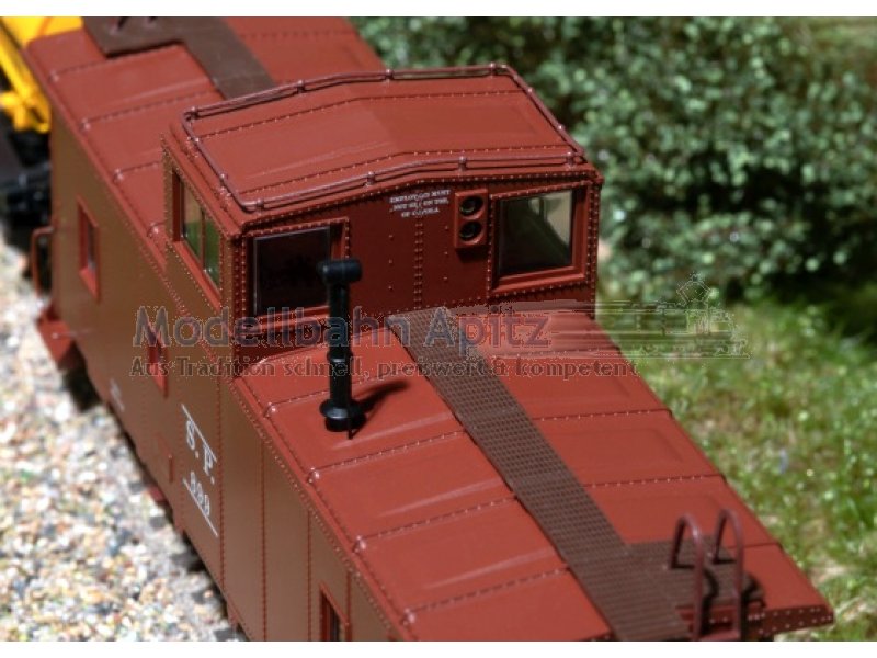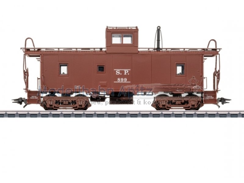 Vorbild: Güterzug-Begleitwagen Caboose der Southern Pacific. Ausführung mit mittiger Dachkanzel. Kastanienbraune Grundfarbgebung. Betriebszustand um 1948.