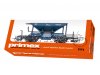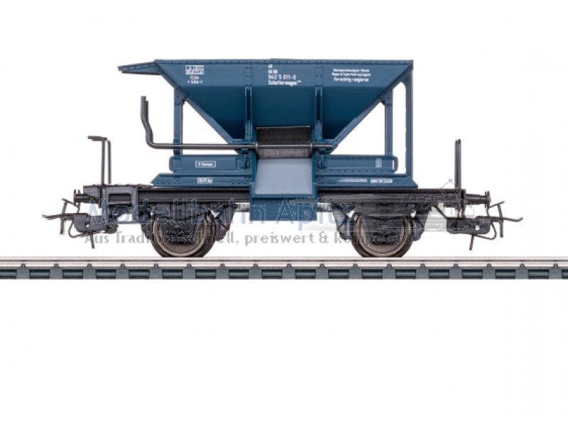Vorbild: Schotterwagen als Bahndienstwagen Bauart Talbot. Ozeanblaue Grundfarbgebung. Deutsche Bundesbahn (DB). Betriebszustand Ende der 1980er Jahre. Modell: Entladeklappen durch Handhebel zu öffnen. Relex-Kupplungen. Verpackung in orangefarbener primex-Gestaltung. Länge über Puffer 9,5 cm.Gleichstromradsatz E700500.