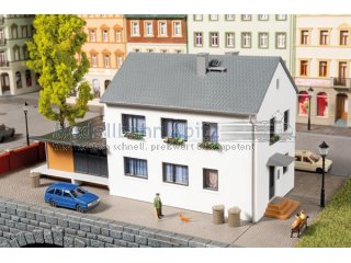 Ein Geschäftshaus mit Wohnungen, wie man es heute in vielen Straßen findet. Der Bausatz passt damit hervorragend zum aktuellen Stadtbild. Für die Innengestaltung liegen passende Friseurstühle aus 3-D-Druck bei, damit auch hinter den Fenstern etwas passiert.