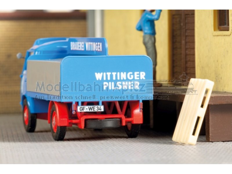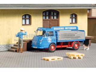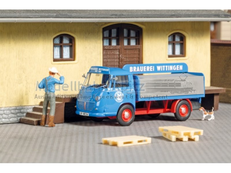 Fertigmodell mit detaillierter Bedruckung. Gegen Ende der 50er Jahre produzierte Carl F. W. Borgward im Goliath-Werk in Bremen den modern konstruierten Goliath Express 1100. Die Fahrzeuge galten als ungewöhnlich vielseitig und leistungsfähig. Kennzeichen und Rückspiegel zur Selbstmontage liegen bei. 52,5 × 20,7 × 22 mm