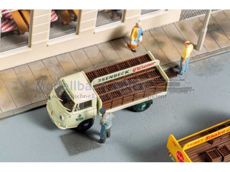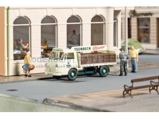 Fertigmodell mit detaillierter Bedruckung. Gegen Ende der 50er Jahre produzierte Carl F. W. Borgward im Goliath-Werk in Bremen den modern konstruierten Goliath Express 1100. Die Fahrzeuge galten als ungewöhnlich vielseitig und leistungsfähig. Kennzeichen und Rückspiegel zur Selbstmontage liegen bei.