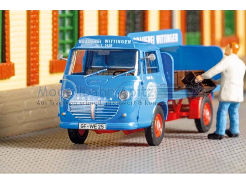 Fertigmodell mit detaillierter Bedruckung. Gegen Ende der 50er Jahre produzierte Carl F. W. Borgward im Goliath-Werk in Bremen den modern konstruierten Goliath Express 1100. Die Fahrzeuge galten als ungewöhnlich vielseitig und leistungsfähig. Kennzeichen und Rückspiegel zur Selbstmontage liegen bei.