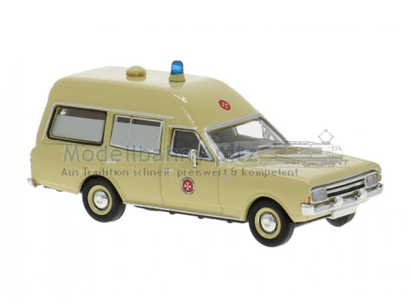 Brekina, Opel Rekord C KTW, 1968, Johanniter Unfall Hilfe, 1:87