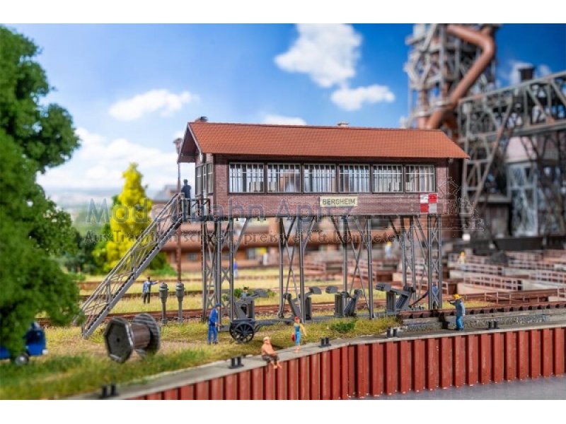 Steuerzentrale im Miniaturformat – über dieses Stellwerk werden in der Realität Weichen gestellt, Signale geschaltet und der Verkehr zum Leben erweckt. Das Modell orientiert sich an einem französischen Vorbild und besticht durch seine schlanke Konstruktion auf filigranen Stützen. Die erhöhte Bauweise erlaubt eine Platzierung zwischen den Gleisen. Eine detailreiche Inneneinrichtung liegt bei und ergänzt das Modell.