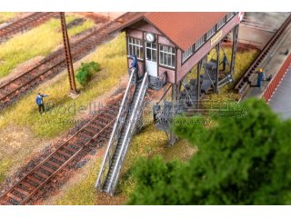Steuerzentrale im Miniaturformat – über dieses Stellwerk werden in der Realität Weichen gestellt, Signale geschaltet und der Verkehr zum Leben erweckt. Das Modell orientiert sich an einem französischen Vorbild und besticht durch seine schlanke Konstruktion auf filigranen Stützen. Die erhöhte Bauweise erlaubt eine Platzierung zwischen den Gleisen. Eine detailreiche Inneneinrichtung liegt bei und ergänzt das Modell.