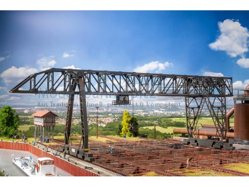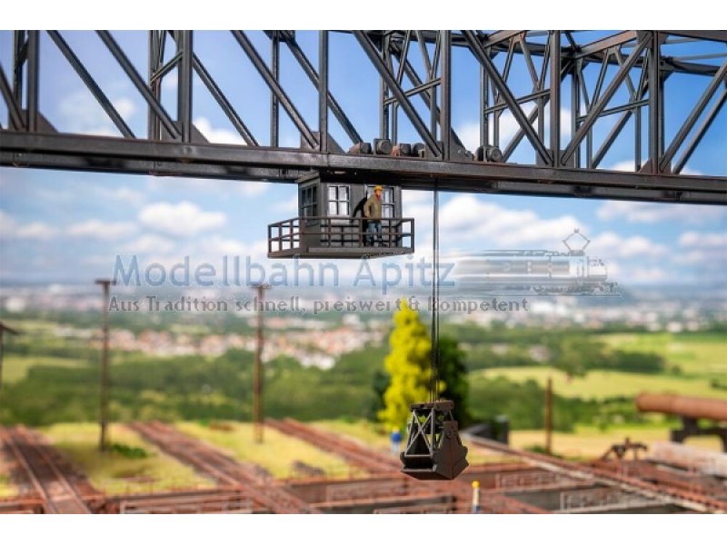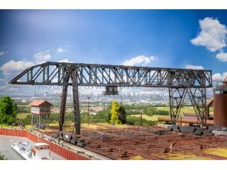 Inspiriert vom Portalkran des Meidericher Hüttenwerks, der 2025 sein 100-jähriges Bestehen feiert, bringt dieses Modell ein Stück Schwerindustrie auf die Anlage. Die Konstruktion erlaubt den Bau in vier Längen – von 528 bis 798 mm – und macht den Kran vielseitig einsetzbar. Ideal für Industrieanlagen zum Schaffen einer authentischen Atmosphäre.