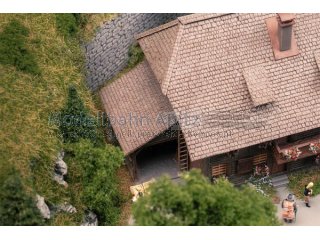 Ein charmantes, dunkles Schwarzwaldhaus, wie man es in den Höhenlagen des Schwarzwaldes findet. Blumenkästen in leuchtenden Farben schmücken die Fassade und verleihen dem Gebäude eine heimische Ausstrahlung. Dank seiner dezenten Größe fügt sich das Haus perfekt in Wiesen- und Waldlandschaften ein und eignet sich ideal für den Anlagenhintergrund. Inklusive Figur, einem Uhrenträger – ein kleines Stück Schwarzwälder Tradition für jede Modellwelt.