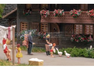 Ein charmantes, dunkles Schwarzwaldhaus, wie man es in den Höhenlagen des Schwarzwaldes findet. Blumenkästen in leuchtenden Farben schmücken die Fassade und verleihen dem Gebäude eine heimische Ausstrahlung. Dank seiner dezenten Größe fügt sich das Haus perfekt in Wiesen- und Waldlandschaften ein und eignet sich ideal für den Anlagenhintergrund. Inklusive Figur, einem Uhrenträger – ein kleines Stück Schwarzwälder Tradition für jede Modellwelt.
