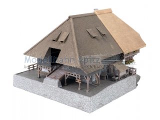 Ein echtes Wahrzeichen aus der Region! Ein stattlicher Schwarzwaldhof mit steinernem Kellergeschoss, Hocheinfahrt, Holzbalkon sowie Stroh- und Schindeldach. Zwei tanzende Figuren in Tracht bringen Leben auf den Hof und in die Modellwelt. Perfekt geeignet um die Waldlandschaft etwas aufzupeppen und ein bisschen ländliche Tradition auf die Anlage ziehen zu lassen.
