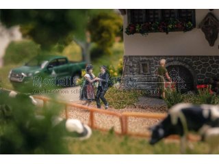 Ein echtes Wahrzeichen aus der Region! Ein stattlicher Schwarzwaldhof mit steinernem Kellergeschoss, Hocheinfahrt, Holzbalkon sowie Stroh- und Schindeldach. Zwei tanzende Figuren in Tracht bringen Leben auf den Hof und in die Modellwelt. Perfekt geeignet um die Waldlandschaft etwas aufzupeppen und ein bisschen ländliche Tradition auf die Anlage ziehen zu lassen.