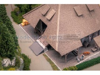 Ein echtes Wahrzeichen aus der Region! Ein stattlicher Schwarzwaldhof mit steinernem Kellergeschoss, Hocheinfahrt, Holzbalkon sowie Stroh- und Schindeldach. Zwei tanzende Figuren in Tracht bringen Leben auf den Hof und in die Modellwelt. Perfekt geeignet um die Waldlandschaft etwas aufzupeppen und ein bisschen ländliche Tradition auf die Anlage ziehen zu lassen.